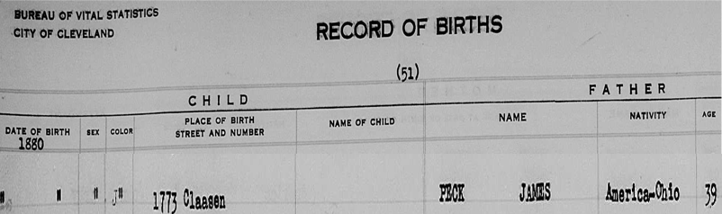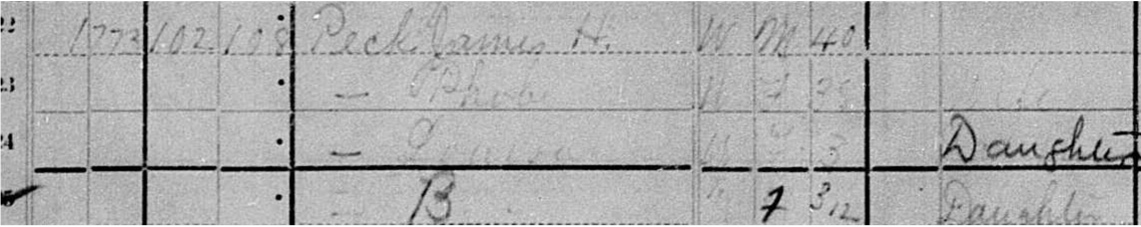 A home is built and Phoebe Peck gives birth to a daughter in the home in March 1880. The little girl is listed as “B Peck” and later named Ethel.