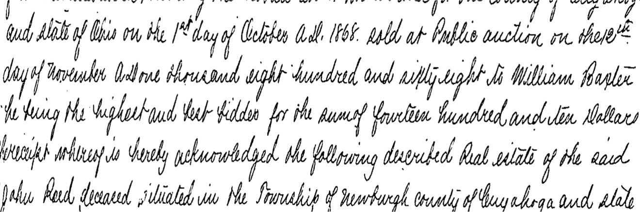 Here is an example of research on a home in the Slavic Village area from the time of the Connecticut Land Company to the present day. I can provide a complete history with all the documentation or just research during the time period of your interest.