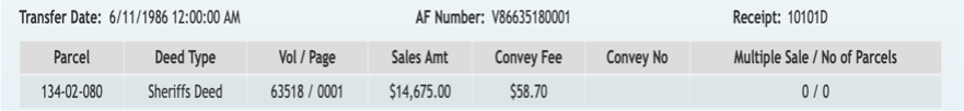 On Sept. 1 2000 there are two sales transactions with a $44,900 sale followed the same day with a $86,000 sales price! A mortgage was also recorded for $68,600.
