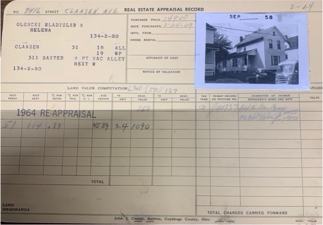The City of Cleveland and County Appraiser office notes minor enhancements to the home including building a garage in 1957 and a front fence addition in 1973. Mr. Olencki also completed interior remodeling in 1958.