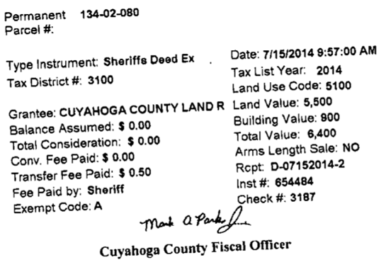 The home was sold again at the end of 1975 for $21,000. From that point forward the house incurred multiple mortgages and eventually was foreclosed on in 1986 by the Cuyahoga County Sherriff.